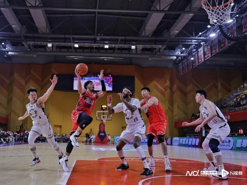 久违赛场的郭艾伦(红)本场比赛复出。南都N视频记者 黎湛均摄